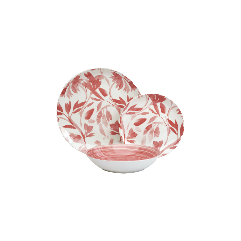 Set piatti 18 pezzi, colore rosso, grigio, materiale in ceramica