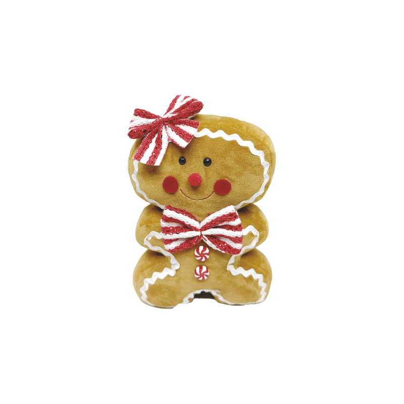 Omino pan di zenzero decorativo, materiale 100% poliestere, base in cemento, fibra sintetica, plastica, dimensioni prodotto 9x19x26h cm.