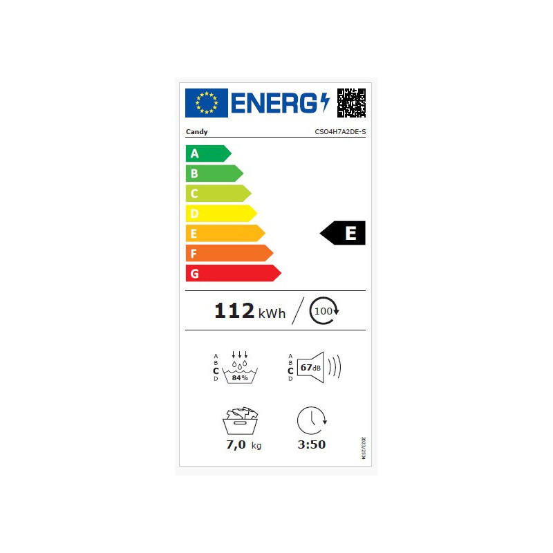 Candy offre una serie completa di cicli rapidi, da 30 a 90 minuti, progettati per soddisfare le esigenze di asciugatura quotidiane. Versatile, veloce e affidabile, questa asciugatrice è la soluzione ideale per risparmiare tempo e risorse.Modello CSO4H7A2DE-S , Tipo di asciugatrice Pompa di calore, Capacità di carico 7 kg, Connettività Wifi+Bluetooth, Classe energetica A++/nuova classe E, Consumo di energia 212 (kWh/annum), Rumorosità 67 db, Numero di programmi 14, Partenza ritardata, Motore AC, Volume cesto (lt) 99, Display Touch e manopola, Tubo di scarico acqua No, Dimensioni (LxPxA) 596x484x850 .
