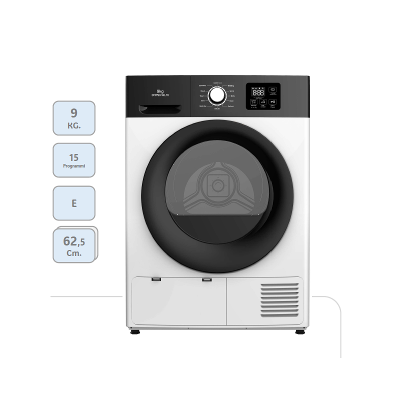 Asciugatrice a pompa di calore, Capacità di carico 9 kg, Classe energetica E, Libera installazione