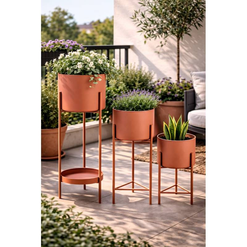 Il set sottovasi con supporto MD Casa da 3 pezzi è la soluzione ideale per chi desidera arredare con stile ambienti interni ed esterni coperti, valorizzando piante e composizioni verdi con un design moderno e minimale. Realizzati in ferro con verniciatura a polvere, questi portavasi garantiscono resistenza, stabilità e durata nel tempo. Il set include tre misure diverse, perfette per creare composizioni decorative dinamiche e armoniose. Il modello più grande è dotato di ripiano integrato alla base, ideale per appoggiare piccoli oggetti o accessori, aggiungendo funzionalità oltre all’estetica.