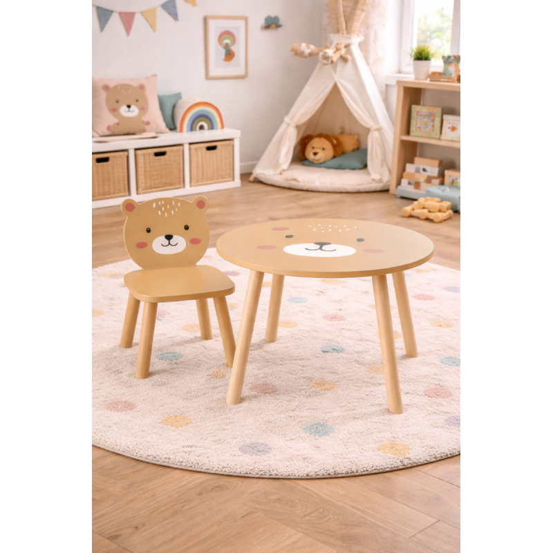 Crea uno spazio tutto dedicato ai più piccoli con questo delizioso set composto da tavolino e sedia coordinata, pensato per accompagnare ogni momento di gioco, disegno e apprendimento. Le dolci fantasie ispirate agli animali rendono l’ambiente accogliente e stimolante, perfetto per la cameretta o l’area gioco. Realizzato in MDF e legno di pino, il set combina resistenza e leggerezza, garantendo stabilità e sicurezza durante l’utilizzo quotidiano. Le dimensioni sono studiate appositamente per i bambini, favorendo una postura corretta e il massimo comfort.