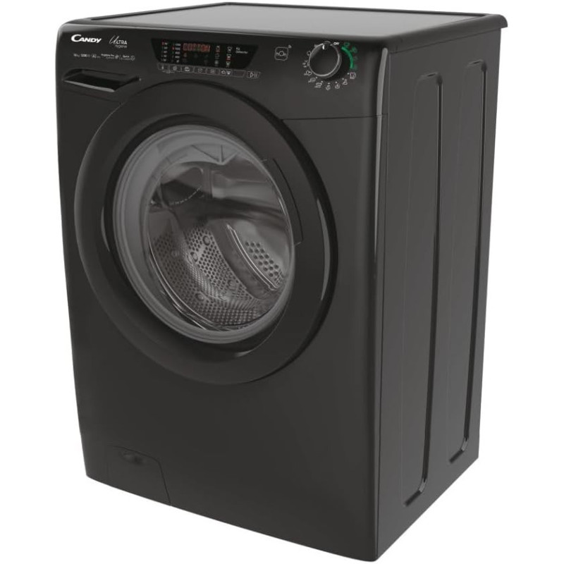 Il design elegante con finitura nera, cestello in acciaio inox e famiglia Ultra Hygiene rende questa lavatrice Candy perfetta per ambienti moderni, unendo estetica e funzionalità.