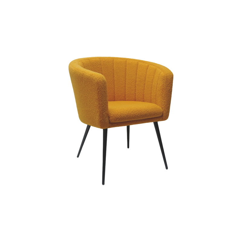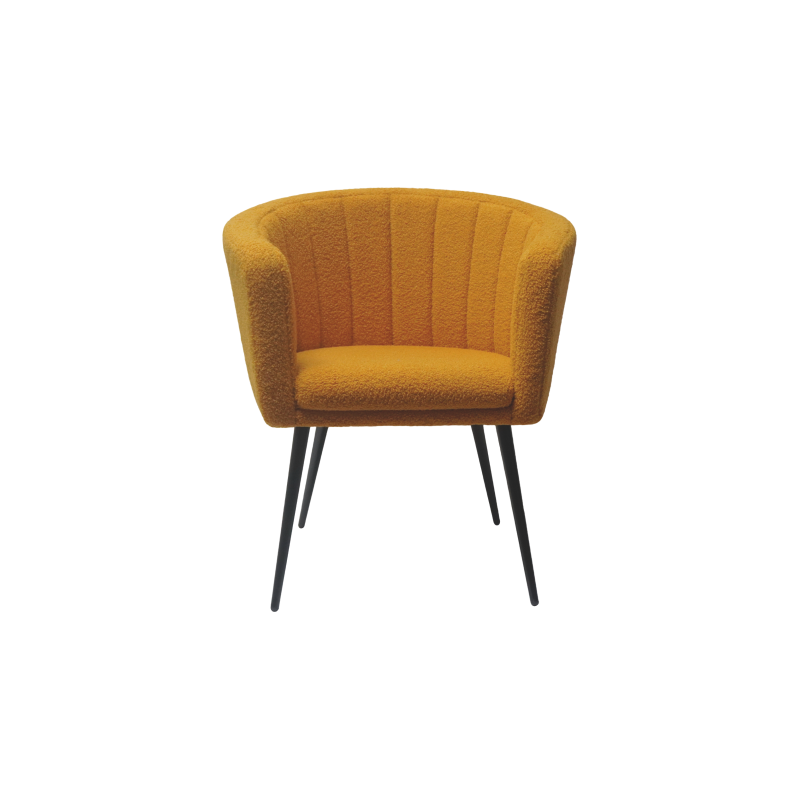 L’imbottitura in spugna garantisce un comfort ottimale, mentre la solida struttura in compensato e le gambe in metallo verniciato a polvere nera assicurano stabilità e resistenza, con una portata massima di 160 kg.