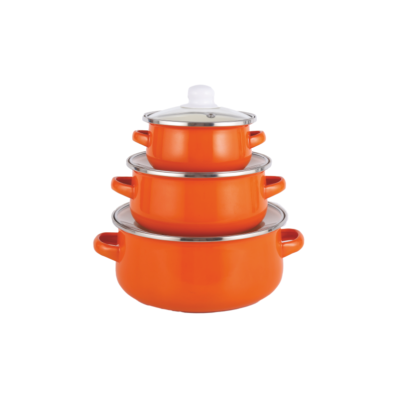 Set batteria pentole, carbon steel, colori vari, 3 pezzi, materiale in acciaio al carbonio smaltato, coperchio in vetro, diametro 12,16, 20 cm, compatibile con piano cottura a gas
