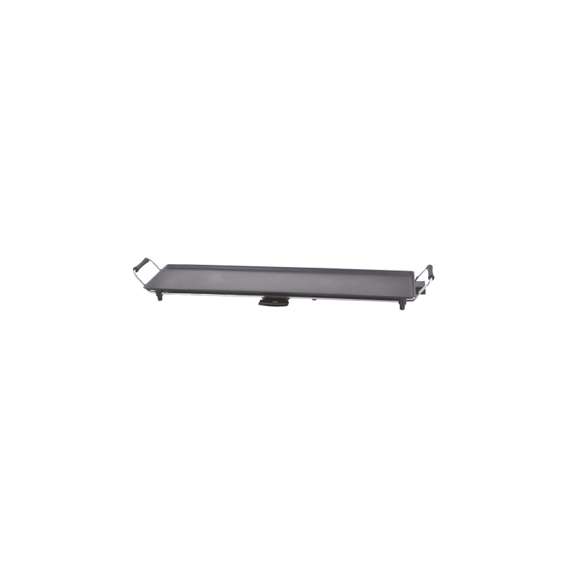 Griglia teppanyaki da 2000W, dimensioni 90x23 cm con termostato, fondo antiaderente, maniglie in materiale isolante e piedini antiscivolo, termostato amovibile, vaschetta di raccolta grassi.