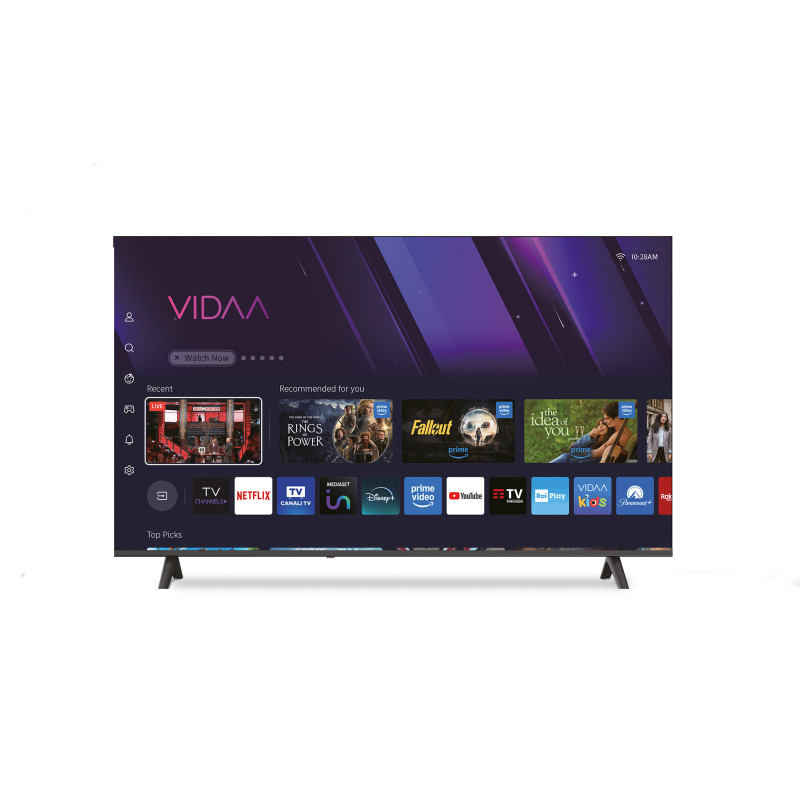 Tv software : VIDAA Risoluzione 3840 x 2160 UHD – HDR Contrasto 5000:1 Formato 16:9 widescreen THINBORDER Turner DVB-T2 h.265 HEVC main 10/DVB-S2 OSD multilingua Rete RJ45 / WI-FI HDMI X3 – USB X2 – -AV (MINI) X1 – CUFFIE X1 Optical out X1 – CI x1 – RFX2 Altoparlanti 10W X2 (Dolby Audio) + Surround Alimentazione AC 100-240V 50/60HZ Classe energetica E, Dimensioni con stand: 1226 x 240 x 774mm Peso netto 11 Kg Attacco VESA 200×200 Telecomando incluso
